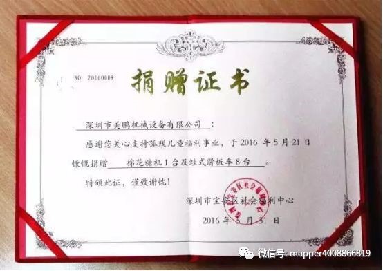 2015年兒童節(jié),美鵬愛心公益基金會參加了“包包里的陽光”項目,為陽光學(xué)校的20名小孩捐助兒童節(jié)禮物。6月1日美鵬愛心公益基金會受邀參加寶安陽光公益學(xué)校舉辦的兒童節(jié)派對。