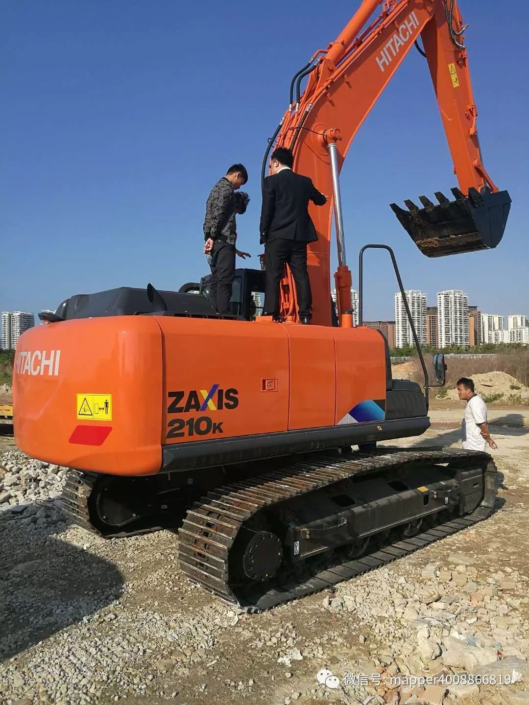 在展會開始之前,由趙兵總監(jiān)及日立都業(yè)圣先生在機(jī)器擺放場地,實地為客戶講解日立再生認(rèn)證機(jī)及ZX210K-5A新機(jī)。