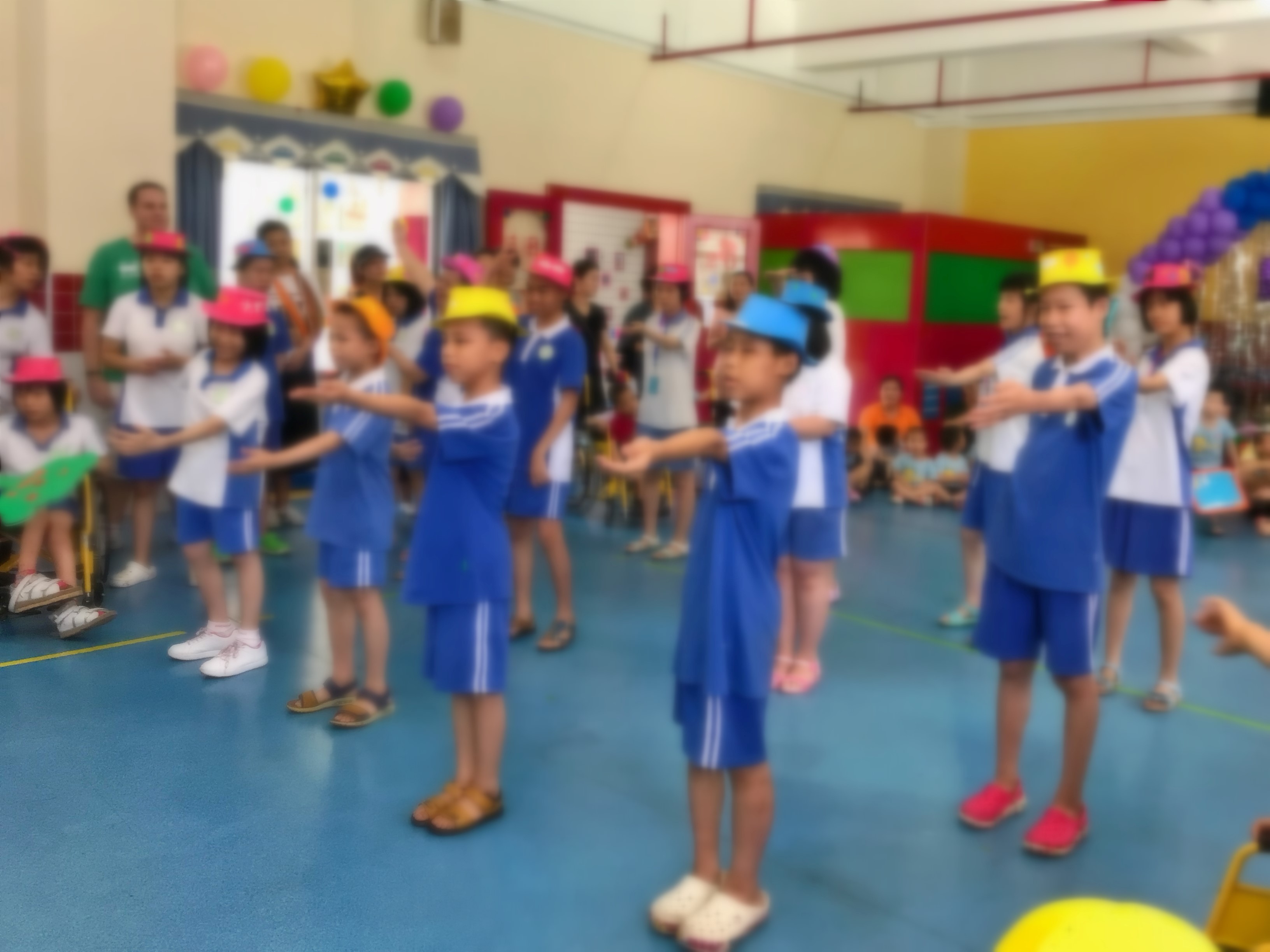 活動結(jié)束時,這群可愛的小朋友們?yōu)榇蠹冶硌萘耸终Z操。他們掛在臉上的笑容和那份陽光活潑不禁讓現(xiàn)場的每一位志愿者為之動容。